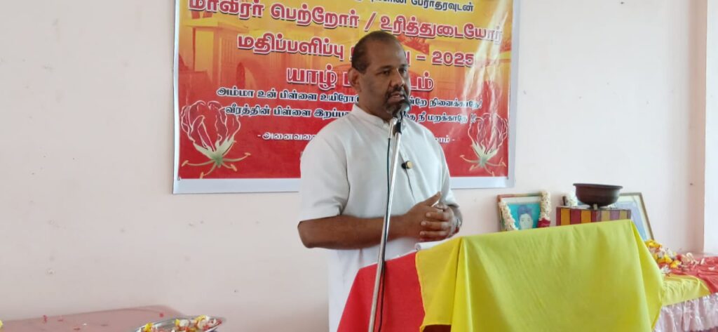 மாவீரர் நாளை முன்னிட்டு, மாவீரர் பெற்றோர் மற்றும் உரித்துடையோருக்கான மதிப்பளிப்பு நிகழ்வு யாழ்.சாவகச்சேரி பொன் விழா மண்டபத்தில் நேற்று(23) இடம்பெற்றது.