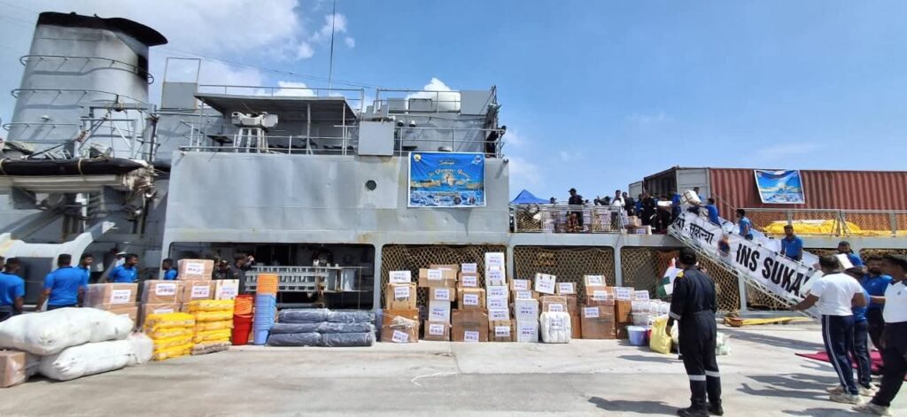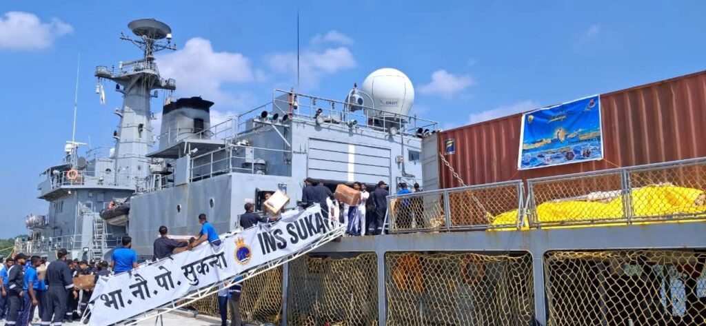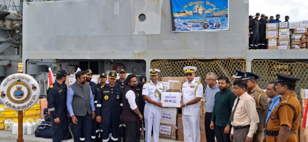 அனர்த்த நிவாரணப் பொருட்களுடன் இந்தியாவின் INS சுகன்யா எனும் போர்க்கப்பல் திருகோணமலைக்கு நேற்று(01) வருகைதந்துள்ளது.