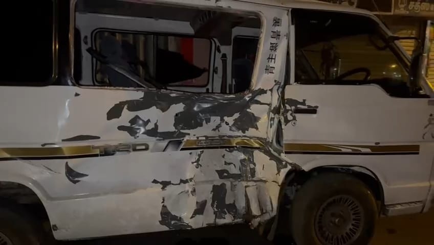 கஸ்தூரியார் வீதி மற்றும் பெரிய கடை வீதி இணையும் சந்தியிலே ஹயஸ் வாகனமும் மோட்டார் சைக்கிளும் விபத்துக்குள்ளானது.
