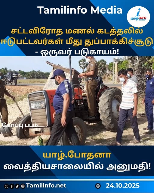 சட்டவிரோத மணல் கடத்தலில் ஈடுபட்டவர்கள் மீது துப்பாக்கிச்சூடு – ஒருவர் படுகாயம்! யாழ்.போதனா வைத்தியசாலையில் அனுமதி!
